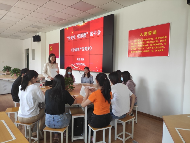为庆祝中国共产党成立100周年,推进党史学习教育,5月7日下午,政法学院组织学生党员在政法楼100室开展“学党史,悟思想”读书会,本次读书会选读的书籍为《中国共产党简史》,读书会由本科生第二党支部书记刘栩静主持。