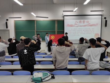 云团课以“开天辟地”为序章,运用党史微课、主题团日、实地探访、青年典型展示、文化文艺节目等多种形式,围绕“苦难与辉煌”“社会主义好”“春天的故事”“迈进新时代”四个篇章,讲解党史发展脉络,呈现了中国共产党波澜壮阔的百年历史。同学们全神贯注,认真观看学习了主题云团课。随后,大家在团支书的带领下高举右手面对团旗,庄严地重温入团誓词。“我志愿加入中国共产主义青年团,坚决拥护中国共产党的领导,遵守团的章程……吃苦在前,享受在后,为共产主义事业而奋斗”,在庄严肃穆的氛围中,同学们更加坚定了为实现中华民族伟大复兴的中国梦不懈奋斗的信念,激发了以崭新精神风貌追梦新时代的使命感。