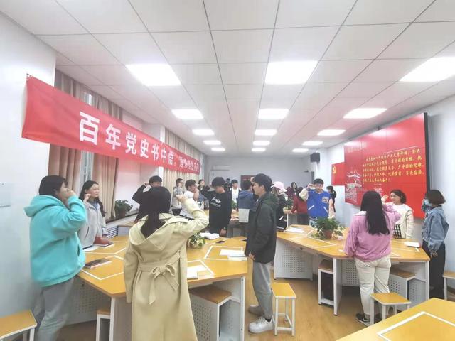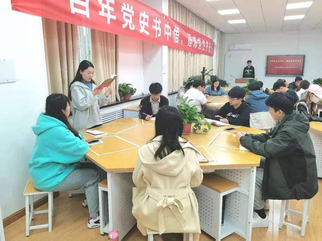 阅读红色经典,礼赞建党百年。活动现场,广大团员青年通过阅读红色书籍、朗诵红色家书、交流红色经典、分享红色故事等形式,深刻认识中国共产党为国家和民族作出的伟大贡献,深入了解党的光辉历史,用心感悟党为民服务的初心宗旨、领会党的创新理论、认识党的精神谱系、传承党的红色基因。同学们纷纷表示,读书分享会是对大家学习成果的一次集中展示,丰富了党史学习教育的形式,使大家从红色基因里汲取信仰的力量,从奋进历程中坚定初心和使命。活动最后,全体团员青年高举右拳,重温入团誓词,进一步明确了共青团员的责任与义务,深刻认识到自身肩负的历史使命和担当。