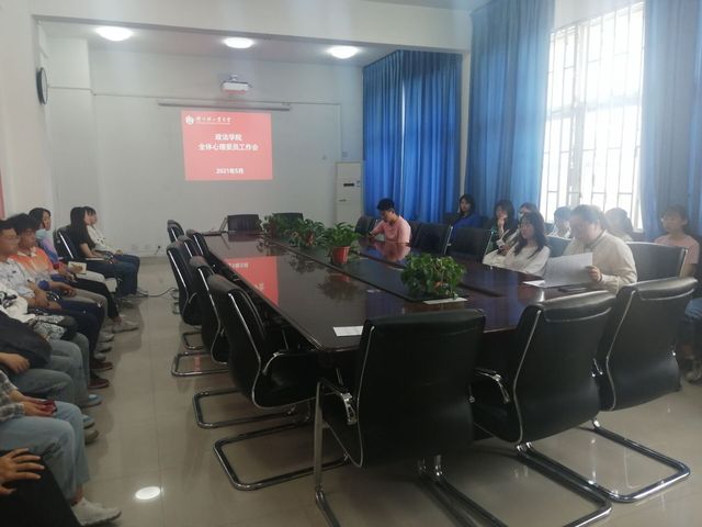 为更好的开展学院心理健康教育工作,落实好心理宣传月工作安排,加强心理委员之间的交流,5月11日,政法学院在政法楼212会议室召开了全体心理委员工作会,心理专职辅导员栗想及全体心理委员及心理部学生干部参加了本次会议。