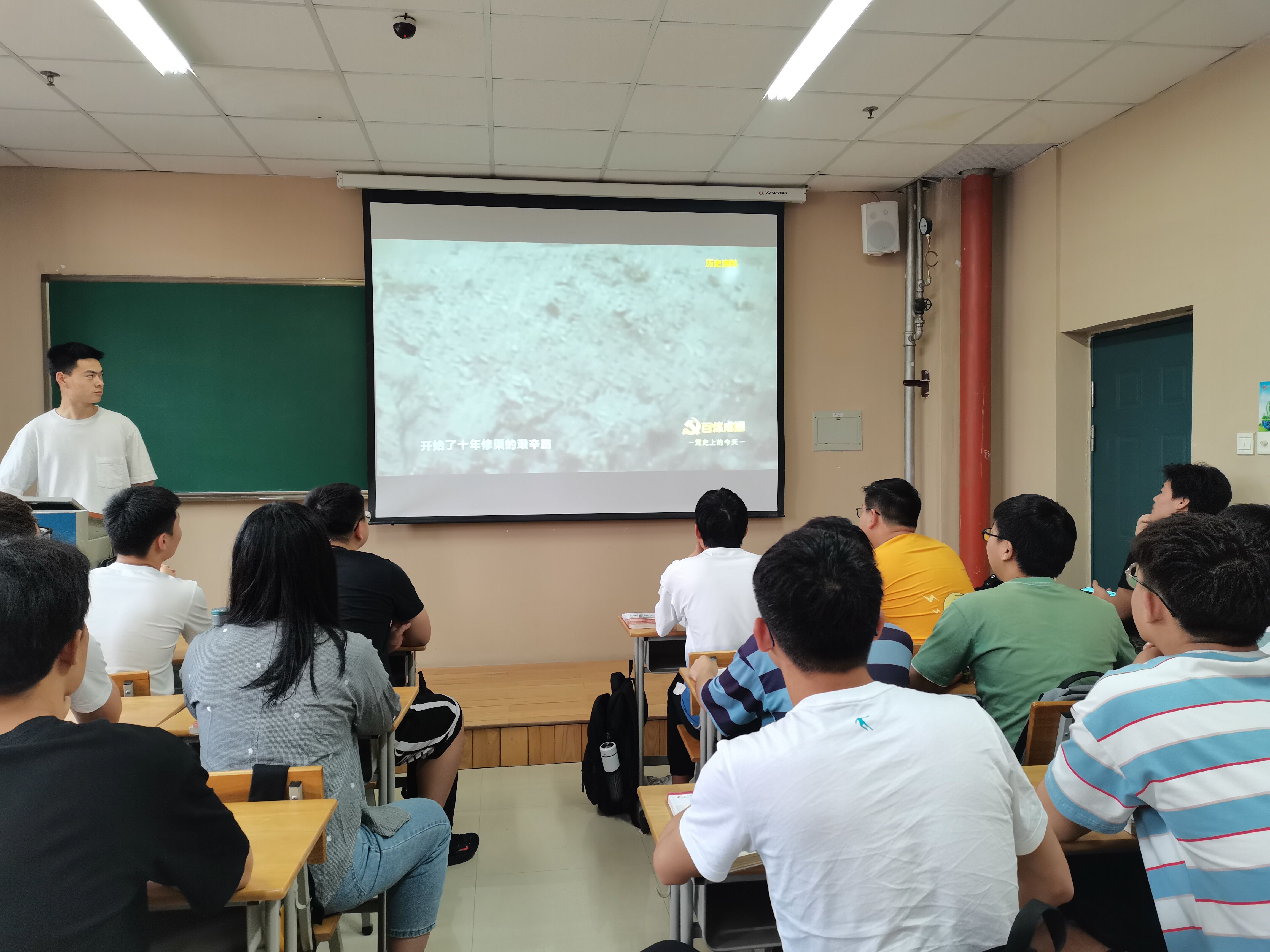 各支部团支书利用课前十分钟组织团支部观看《1960年2月11日:世界第八大奇迹——红旗渠开工》专题片。专题片讲述了上世纪60年代,为改变千百年来缺水的天然困境,林县人民在县委书记杨贵的带领下,在沟壑纵横、悬崖绝壁的太行山上修成长达1500公里的人工天河——红旗渠,改变了过去“吃水贵如油、十年九不收”的景象,与此同时也孕育了“自力更生、艰苦创业、团结协作、无私奉献”的红旗渠精神。大家跟随着短片一起了解到红旗渠建造的自然环境之艰难、开工形势之迫切,感受到了共产党人为人民谋幸福的决心和植根于厚重中原文化的红旗渠精神。