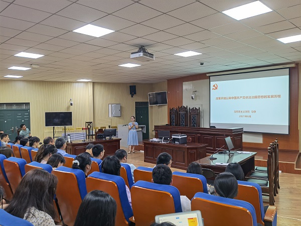 为了贯彻落实校党委关于开展党史学习教育的安排部署,持续推进党史学习教育走深走实,6月3日下午,政法学院在政法楼112举行党史学习教育专题报告会。政法学院全体教师、学生党员代表参加了报告会,报告由校党委讲师团成员、马克思主义学院马铮老师主讲。