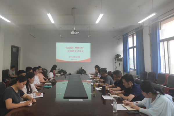 6月17日下午,材料与化学工程学院在化工楼222会议室召开“共话成长 畅想未来”毕业生座谈会,学院领导班子、各系主任、毕业班辅导员、班主任以及毕业班学生代表参加座谈会。会议由学院党委副书记司丽娜主持。