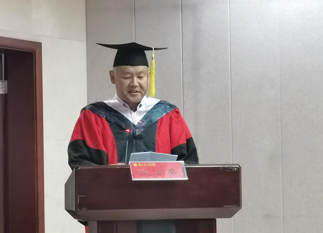 下午,毕业典礼在雄壮的国歌声中拉开帷幕。学院党委副书记刘放美宣读关于表彰2021届十佳毕业生的决定和关于表彰2021届优秀毕业生的决定。副院长代志明宣读了授予学位名单。我校2021届“十佳毕业生”鲁奕辰同学代表毕业生发言,他总结了四年来学到的知识与技能,深切表达对学院领导、老师的感激之情,以及即将踏入社会、迈向新征程的坚定信心。在校生代表公共事业管理20192班孙广宁同学表达了要向毕业生学习勇担使命、不负期盼的决心。教师代表钱泳宏老师为同学们送上了真挚的祝福和殷切的希望。院长韩超代表学院致辞,他向所有圆满完成学业的毕业生表示热烈祝贺,也为各位毕业生所获得的成长感到欣喜和骄傲。并对毕业生同学寄予了四点希望:一是牢记校训,传承文化;二是牢记院训,开创未来;三是终身学习,追求真理;四是报效祖国,热爱母校。