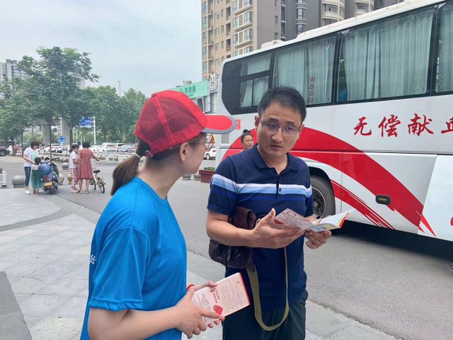 7月10日队员们和血液中心工作人员早早来到了位于金水区信息学院路的瀚海泰苑社区门前,开始了一天的“社区单采成分血”宣传活动。队员们主要负责布置现场、帮助血站工作人员搭建帐篷、摆放献血所需仪器、指引献血人员按流程体检献血、宣传无偿献血知识,并为献血人员提供服务。社区宣传,尤其考验一个人的人际沟通能力,一开始,队员们显得有些羞涩,只是在帐篷旁边向来往行人派发知识手册,效果甚微。在血液中心工作人员的指导下,队员们逐渐克服了羞涩,他们主动走上街头,热情地向社区居民宣传普及义务献血知识,很快献血车门前开始排起了长队,越来越多的居民前来向队员们询问献血知识,一位老奶奶由于年龄原因无法参与单采成分血捐献,但听完队员认真的讲解后,不一会儿便领着自己的家人加入了队伍。看到这暖心的一幕,队员们的心里感到无比欣慰与自豪。
