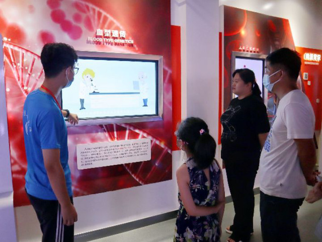 河南省红十字血液中心是一所现代化的采供血机构,配备有智能化的无偿献血科普馆。7月12日,队员们来到了科普馆进行了参观学习。科普馆分为科普展区和互动展区两大部分,在科普展区,队员们在讲解老师的带领下分别了解了血液的成分以及不同成分在身体内发挥的作用、不同血型的区别、不同国家的献血标准和政策等内容,并通过馆内的红外线静脉血管显像仪观察了自己的血管,可谓是大开眼界。在互动展区,这里的创意沙画和各种闯关游戏深深吸引了队员们的目光,在闯关游戏中,队员们在欢声笑语中学习到了更多关于无偿献血的知识。学习过后,队员们从参观者变为了讲解员,积极为来到科普馆参观的小朋友们和家长讲解相关知识,得到了大家的一致好评。担任讲解员的经历,不仅使无偿献血知识牢记于队员们的心中,更让队员们真正成为了无偿献血大爱精神的传播者,为凝聚社会爱心贡献了一份力量。