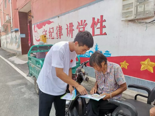 10点,志愿服务队来到商水县西赵桥村。在西赵桥村党群服务中心,队员们通过发放宣传页,讲解空调冰箱等家电使用与保养常识宣传节能环保。队员和村民一起计算节能经济账,让广大村民了解了家电节能的重要性及经济价值。队员还积极与到现场的小朋友进行了互动,行为能力和心理特点,分别开展了多角度、多层次的教育帮扶活动,深入浅出、通俗易懂的为小朋友们讲解了家电使用的注意事项以及紧急事故发生如何快速处置,小朋友也开心的给队员点赞。天气炎热,队员汗流浃背,他们耐心细致热情的讲解,赢得了当地居民的掌声。