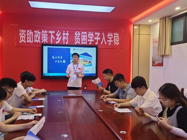 7月11日上午十时,小分队抵达焦作市站区龙翔街道十二会村,为当地高中生宣传高校资助政策。在宣讲会上,学院学生资助宣传大使通过PPT和宣传手册,结合《郑州轻工业大学学生奖励政策》,从奖学金、助学金、生源地贷款、校园地贷款、勤工助学等各方面,给同学们普及了高校完备的“奖、贷、助、补、减”和“新生绿色通道”六位一体的奖助体系和机制,引导同学们知晓这些好政策,不让一位学生因家庭经济困难而失学。同时,学生志愿者们以自身受助经历及我院、我校受助学生自立自强典型,激励同学们坚持努力学习,自强不息,立志为社会、为国家贡献自己的力量,牢记党和国家对于贫困学子的关怀和支持。宣讲会上,同学们积极询问大学学费、生活状况、经济支出等问题,眼神中透露出对大学生活的追求和向往。资助政策宣传大使们对同学们提出的问题一一进行解答。这次座谈会使同学们对国家资助政策有了更加深入地了解,为同学们树立了信心,坚定了学习的信念,对于进一步落实资助育人政策,实现扶智、扶志的目标具有重要意义。