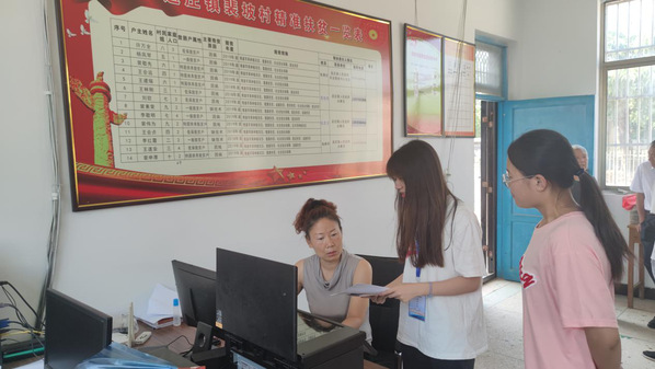 资助宣传到村委 上午10点,实践分队抵达的第二站是裴坡村村委会办公室。在实践队出示工作牌表明来意和身份后,村委会工作人员热情的接待了队员。