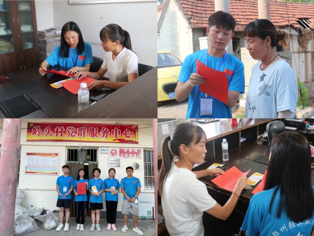 7月14日下午,数学与信息科学学院“常青数·筑梦行”社会实践小分队在安阳县岭头村与当地村民学生亲切交谈,详细了解村民家庭实际情况及地方政府帮扶情况。随后,在村委会和岭头村党群服务中心与值班村干部沟通,全面了解该村留守学生的家庭经济情况、受教育情况以及升学情况,并通过面对面细致讲解、发放资助政策宣传页等方式向村民大力宣传国家资助政策,普及家庭经济困难学生资助政策知识,使当地群众感受到了国家对贫困学生提供的资助服务和暖心政策,同时也激发当地留守儿童自立自强、奋发向上的积极性和行动力。