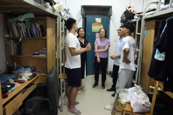 班子成员、导师、辅导员陆续深入教室、实验室和学生宿舍,详细了解留校学生实验进展、项目推进、考研复习等情况,询问汛期期间同学们的生活情况、家里是否有受灾,叮嘱同学们在校期间要树牢安全意识,不信谣、不传谣,传递正能量;鼓励备战考研的同学要努力克服生活上的不力因素,充分利用好时间,认真完成学习规划;要求参与实验任务的同学,务必遵守实验室管理规定,严格按照实验要求规范操作,安全、高效完成实验任务,并提醒同学们遇到困难要第一时间与老师、学院联系。