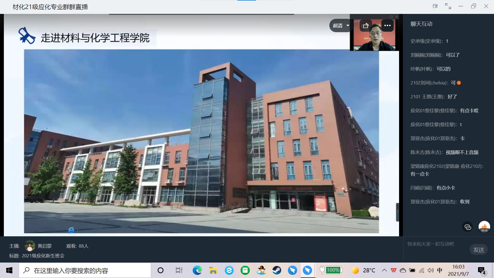 为扎实做好疫情期间的2021级新生网上报到及线上学习等相关工作,增进新生对学校、学院的整体认识,2021年9月7日,材料与化学工程学院新生辅导员分班级召开“你好,新同学”云班会。