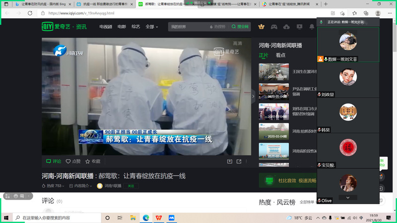 更好的把灾情当教材,引领广大团员与祖国共成长,8月底至9月初,艺术设计学院以团支部为单位陆续开展了“让青春在防汛抗疫中成长”线上主题团日活动。学院全体团员青年参与了本次活动。