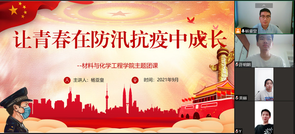 为深入学习贯彻习近平总书记“七一”重要讲话精神,引导团员青年把灾难当教材,与祖国共成长,自8月下旬起,材料与化学工程学院各班团支部陆续组织开展“让青春在防汛抗疫中成长”系列主题团日活动。
