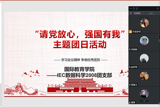 为深入学习贯彻习近平总书记“七一”重要讲话精神,2021年9月,国际教育学院组织开展了“请党放心,强国有我”主题团日活动。学院18级、19级、20级各班团支部参加了此次活动。