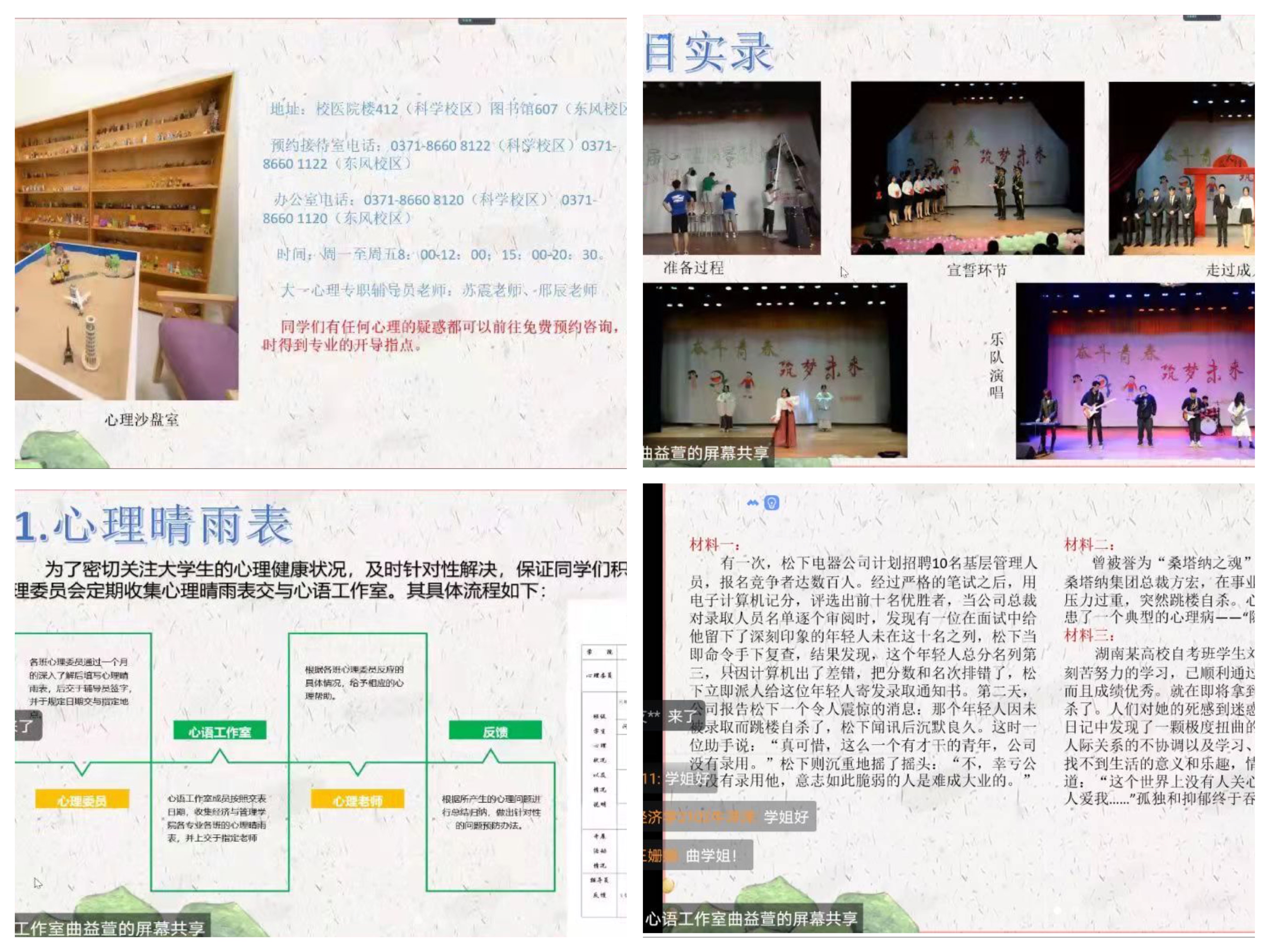 为了密切关注大学生的心理健康状况,帮助新生尽快完成角色过渡,适应全新的校园环境和人生角色的转变,经济与管理学院心语工作室于2021年10月11日-12日在线上线下为全体21级新生召开新学期心理健康教育工作会议。此次会议由心语工作室曲益萱主持,心语工作室全体成员及全体新生参加。