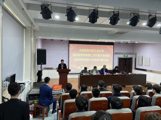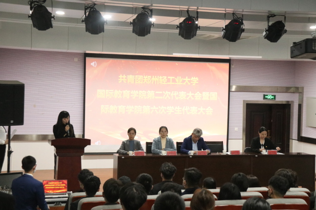 1021日下午,共青团郑州轻工业大学国际教育学院第二次代表大会暨国际教育学院第六次学生代表大会在教二楼130教室隆重召开。校团委副书记方娜、国际教育学院党委书记朱彧、党委副书记李锐杰、团委书记焦云娜、学工办主任路阳、团员代表及学生代表参加了本次大会。