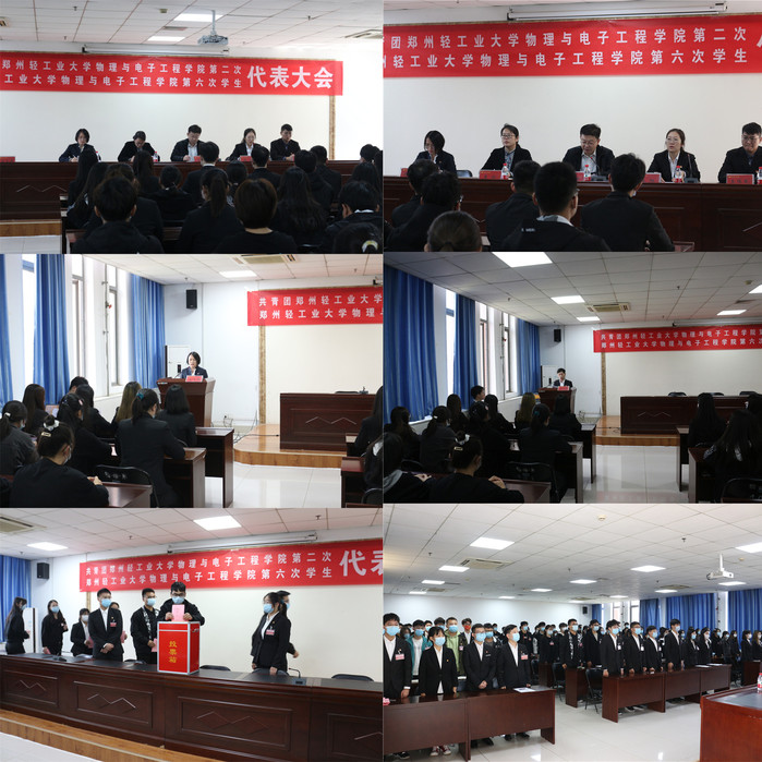 学院全体团员代表、学生代表分别审议并通过了《共青团郑州轻工业大学物理与电子工程学院委员会工作报告》、《郑州轻工业大学物理与电子工程学院学生会工作报告》,选举产生了新一届共青团郑州轻工业大学物理与电子工程学院委员会委员、郑州轻工业大学物理与电子工程学院学生会主席团成员,以及出席共青团郑州轻工业大学第七次代表大会、郑州轻工业大学第十二次学生代表大会的代表。