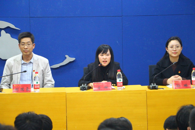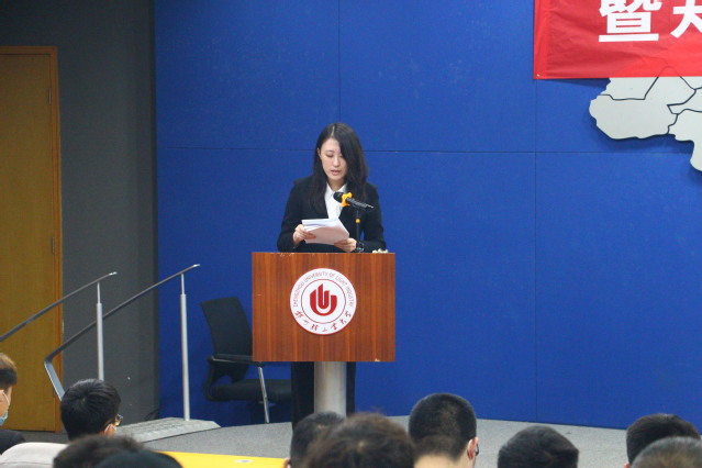 学院党委书记刘国豪老师发表讲话。他代表学院全体师生向大会的胜利召开表示热烈的祝贺,感谢校团委一直以来对学院团学工作的关心、支持和帮助,充分肯定团学组织在服务学生成长成才方面所做的积极贡献,并对学院团学组织提出三点希望和要求:一是要有“自信人生二百年”的志气,树立远大理想;二是要有“学不成名誓不还”的执着,练就过硬本领;三是要有“敢教日月换新天”的担当,贡献青春力量。