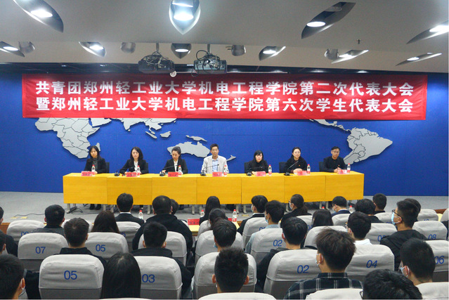 2021年10月21日下午,共青团郑州轻工业大学机电工程学院第二次代表大会暨郑州轻工业大学机电工程学院第六次学生代表大会在图书馆报告厅隆重召开。校团委副书记方娜老师、机电工程学院党委书记刘国豪老师、党委副书记孙琳老师、校团委学生社团管理部主任翟一晓老师、学院团委书记孔馨雨老师、专兼职辅导员、全体团学代表等130余人出席会议。