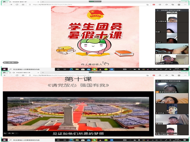 为深入学习研讨习近平总书记在庆祝中国共产党成立100周年大会上的重要讲话精神,进一步丰富假期学习内容供给,更好地帮助青年学生直观化、沉浸式学习党史,近期,我校组织广大团员结合实际,通过手机、网络等渠道,在家中、宿舍收看学习了由团中央基层部、宣传部联合推出的“暑假十课”系列思政课线上视频。