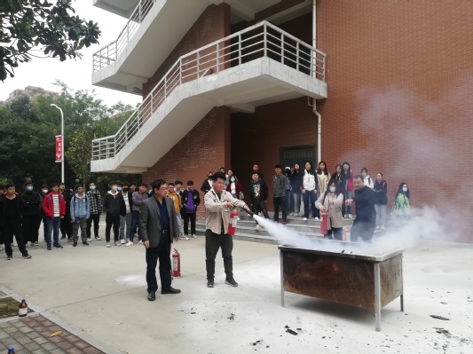 安全教育讲座分两个阶段:理论讲解和现场灭火演练。董主任结合近期媒体报道的关于高校实验室、企业实验室安全事故,详细介绍了实验室存在的危险源,分析了实验室常见安全事故的原因,介绍了预防措施、自救措施、常见逃生方法和火灾扑救措施等。现场演练阶段,全体研究生前往学院广场进行消防安全演练,在保卫处老师指导下,实际操作了实验室常见灭火器,掌握了其使用方法。