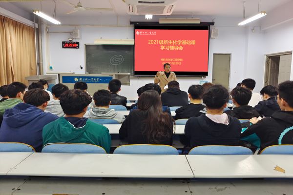 为了解学院2021级新生化学课程的学习情况,掌握新生化学基础情况,激发学生学习兴趣,10月29日晚上7点,材料与化学工程学院在东风校区教三楼405召开新生化学基础课学习辅导会,学院化学系主任户敏老师、新生辅导员及二十余名新生参加了本次辅导会。