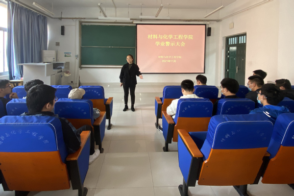 为加强学生学习过程管理,促使学生了解学业状况,及时干预和避免学生可能产生的不力于完成学业的问题,使学生能够顺利完成学业,11月4日中午,材料与化学工程学院在化工楼218室召开学业警示大会。学院党委副书记司丽娜、全体辅导员及受警示的学生参加了会议。会议由党委副书记司丽娜主持。