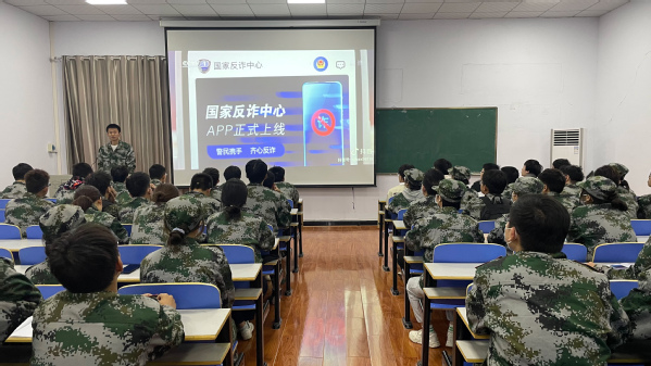 带队老师通过放映短片,展示近来高发的网络贷款、网络刷单、“杀猪盘”、冒充客服退款、假冒熟人等十大诈骗类型,帮助同学们认识陷入网络诈骗的可能性。当前,网络诈骗案件持续高发,花样层出不穷,受骗群众损失惨重,提高全民防范网络诈骗意识,预防此类犯罪刻不容缓。为维护同学们切身利益,班委号召同学们现场拿出手机,安装“国家反诈中心”APP,准确填写信息,启动“诈骗预警”功能——当手机收到涉嫌诈骗的电话、短信或者下载安装涉嫌诈骗的App,智能识别骗子身份并及时预警提示,来帮助同学们避免上当受骗。