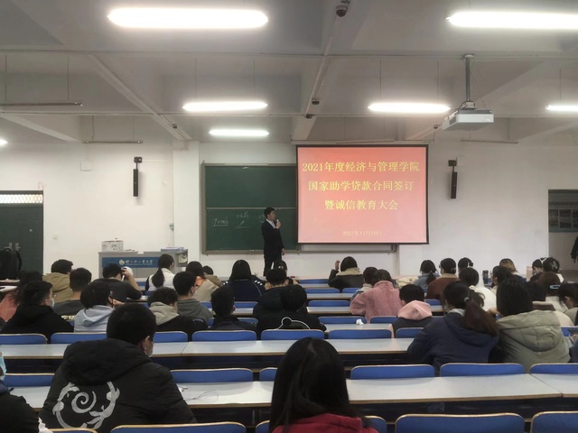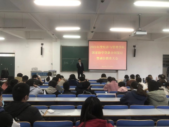 为保障我院2021年国家助学贷款工作有序地开展,推动助学贷款各项工作流程顺利进行,强化学生诚信教育,2021年11月10日中午,经济与管理学院负责资助工作的邢辰老师以及申请高校助学贷款的学生在经管楼309召开2021年国家助学贷款合同签订暨诚信教育大会。