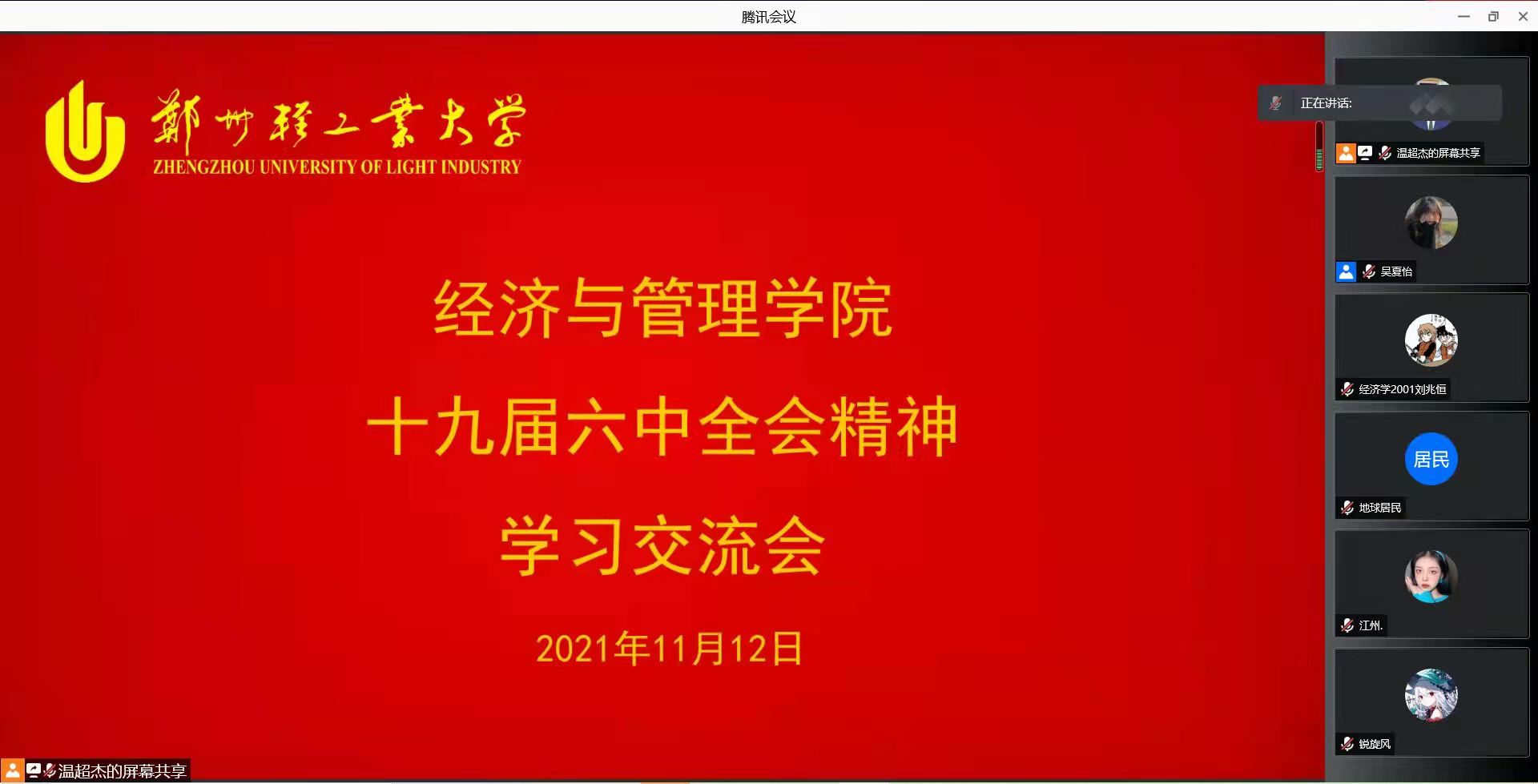 连日来,党的十九届六中全会精神在我校持续引发热烈反响。为了传达学习习近平总书记在党的十九届六中全会上的重要讲话和全会精神,经济与管理学院组织全体同学在11月11日-11月14日通过个人自学、学习交流会、基层团支部召开主题团日活动等形式,带领全院青年学生认真学习、深刻体悟全会精神。