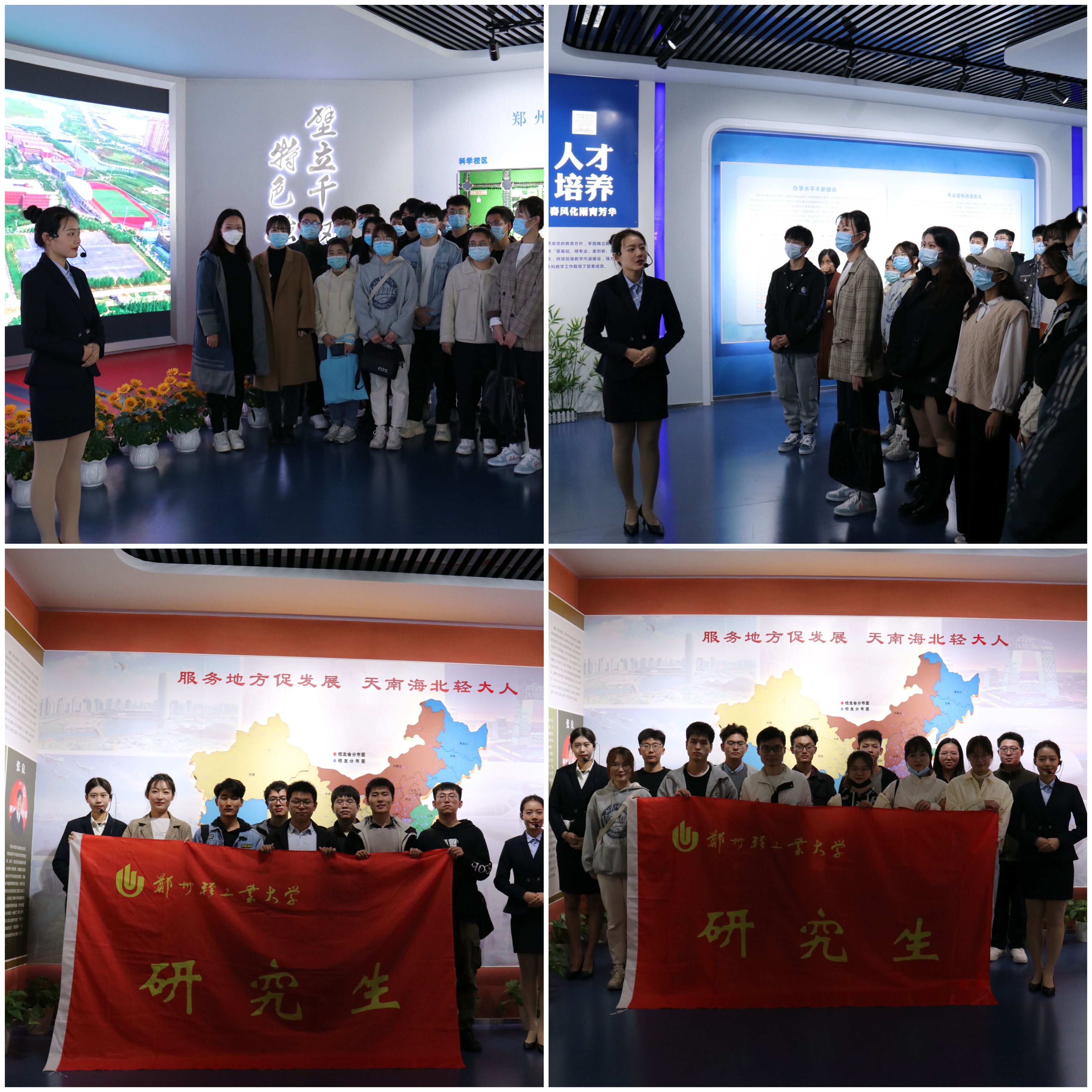 随后,师生们共同来到校史馆,在讲解员的引导下,大家认真参观了“人才培养”“科学研究”“校企合作”“创新创业”“桃李芬芳”五个篇章的校史展室,一起重温了我校的发展历程。在活动中,研究生们跟随讲解员的讲解回顾了学校建校40余年的发展历程和光辉历史,了解了学校各个历史时期科研成果、组织建设、校园生活、师资力量、社会服务等方面的情况,切身感受了学校深厚的文化底蕴,体会到了学校薪火传承中“为之则易,不为则难”的内涵。