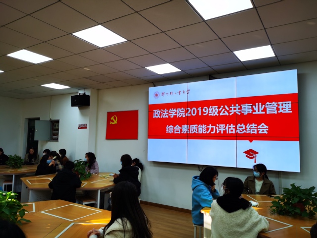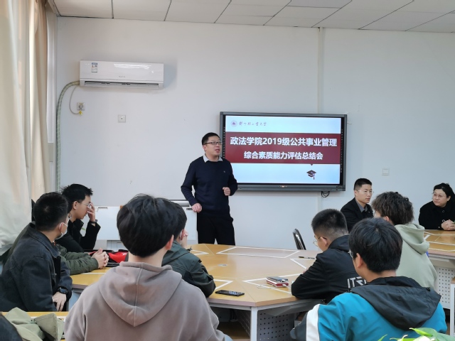 11月26日下午,政法学院公共事业管理系在政法楼100举办学生专业综合素质能力训练总结大会。公共事业管理系副主任刘晋博士、张绍阳博士、张家旗博士、冯华超博士以及2019级公共事业管理专业全体同学参加了此次会议,会议由系副主任刘晋主持。