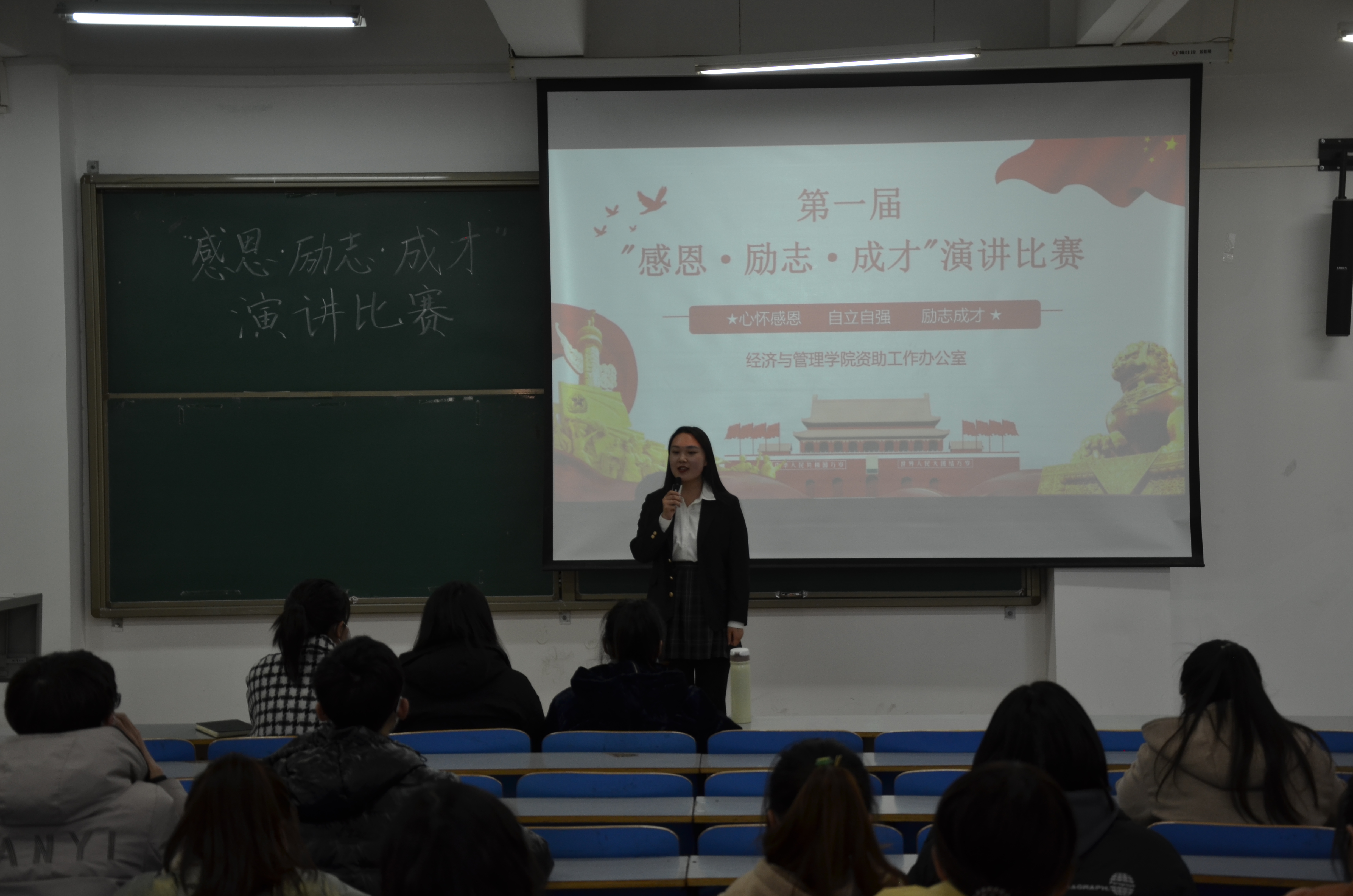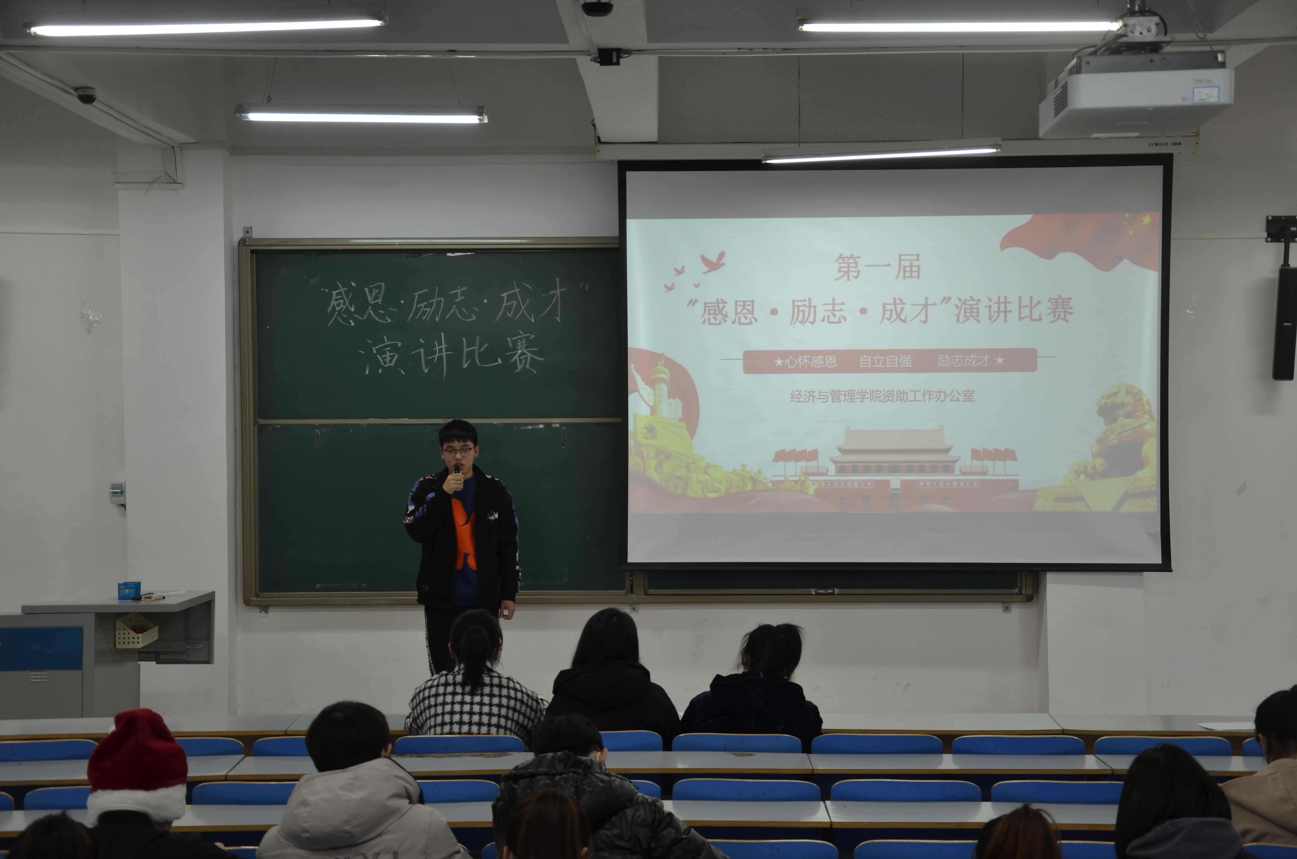 为激发学生演讲热情,提升学生演讲能力,感悟“感恩”、“励志”、“成才”的深刻内涵,增强大家的自信心和表达能力,缓解课业压力,营造轻松活泼的艺术氛围,构建和谐愉快的校园生活,经济与管理学院于12月2日下午三点在科学校区经管楼309举办“感恩·励志·成才”主题演讲比赛。