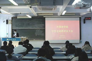 为持续深化学生会改革,提高我院学生会工作人员服务同学的意识和履职能力,外国语学院于12月1日中午在教三楼604召开2021年学生会述职评议大会。学院团委书记矫菲、学生会全体工作人员和学生代表参加了评议大会。