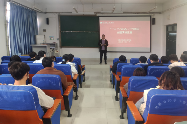 时代的步伐坚定向前,历史的声音仍在耳边。为纪念一二·九运动八十六周年,弘扬“12.9”爱国主义精神, 12月6日,材料与化学工程学院在化工楼218举办了主题演讲比赛。学院专职团干杨亚皇老师、各年级学生代表参加本次活动。