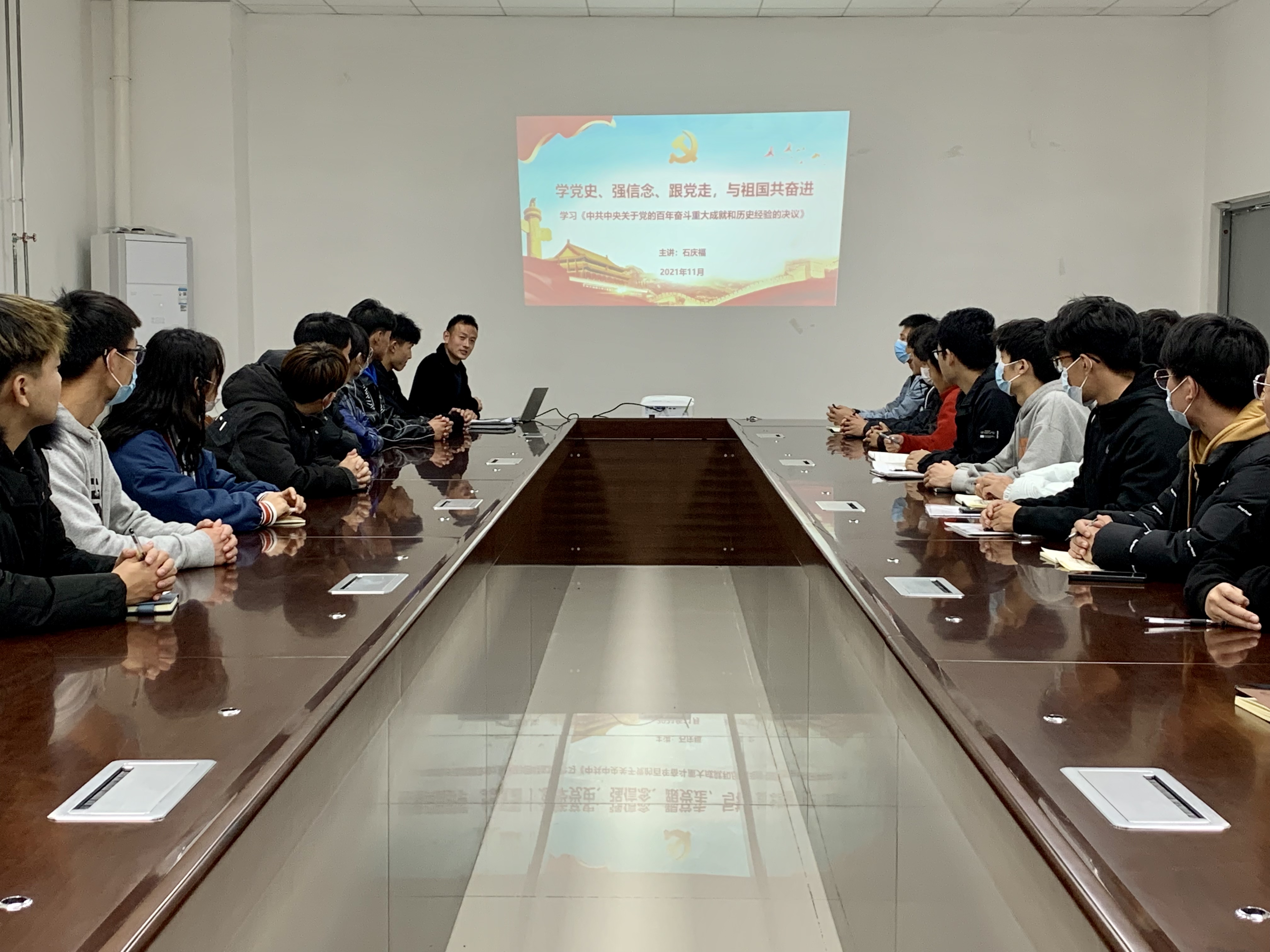 为深入学习贯彻党的十九届六中全会精神,引导广大青年学子坚定理想信念、牢记初心使命,12月7日,体育学院在科学校区体育馆会议室开展“学党史、强信念、跟党走,与祖国共奋进——学习党的十九届六中全会精神”主题宣讲活动。本次活动由校“青年讲师团”成员、体育学院团委书记石庆福主讲,体育学院团委委员、各团支部委员和团学骨干参加了此次活动。