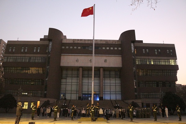 2021年12月13日,是我国第八个法定的南京大屠杀死难者国家公祭日。为悼念南京大屠杀死难的同胞,缅怀革命先烈,12月13日早上,外国语学院在东风校区图书馆广场举行“不忘来时路,迈进新征程”主题升旗仪式。学院辅导员和2021级全体学生参加了本次升旗仪式。
