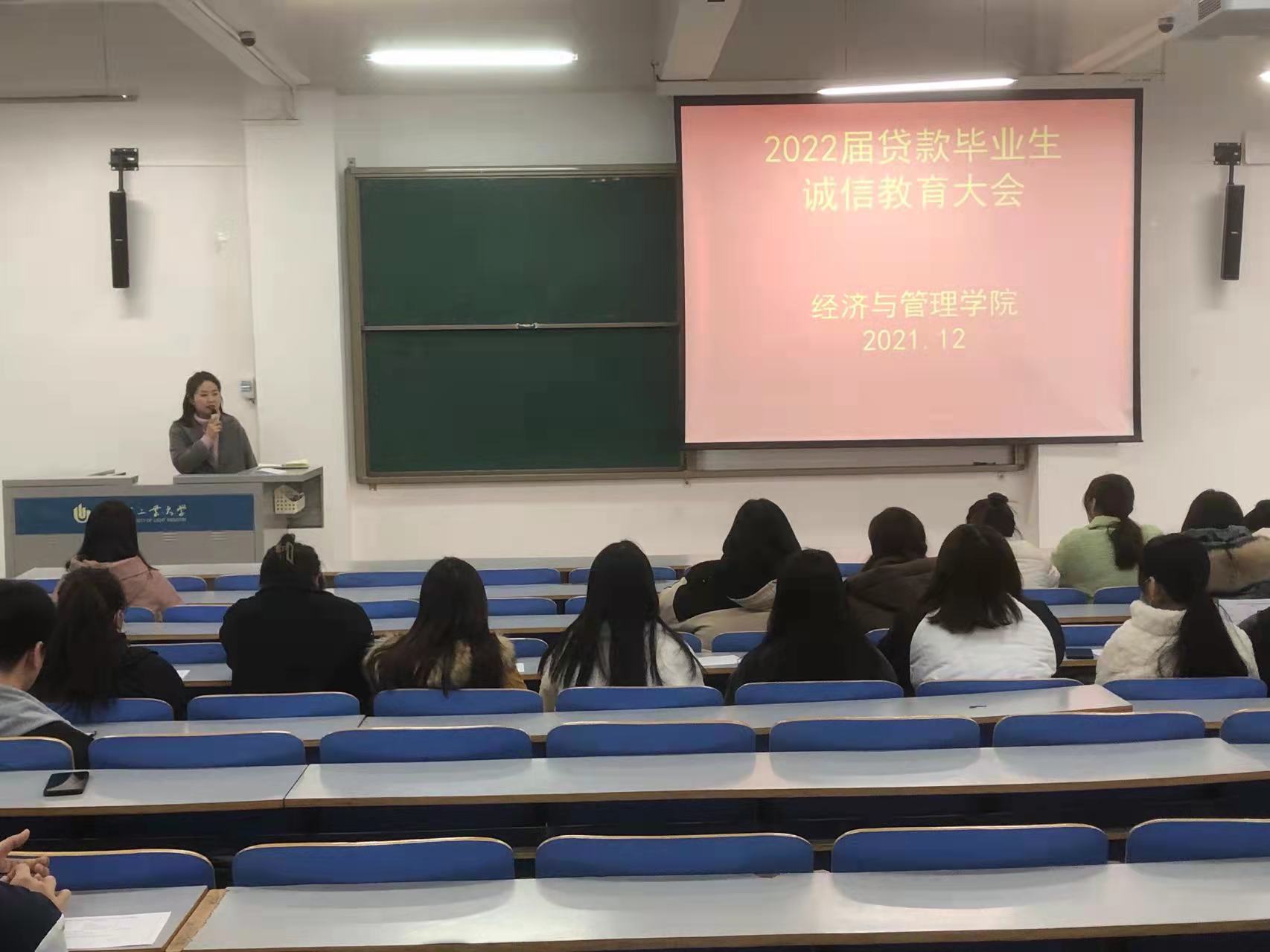 为帮助贷款毕业生了解掌握还款流程和注意事项,加强贷款毕业生诚信教育,12月16日,经济与管理学院在经管楼309召开2022届贷款毕业生线上诚信教育大会,负责学院资助工作的李育光老师和贷款毕业生参加此次大会。