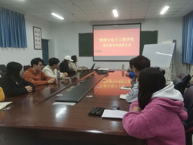 为加强基层团组织建设,抓好团干部队伍建设,激发团支部活力。12月15日晚,物理与电子工程学院在四教510会议室召开了团支书述职评议大会,团委书记周芳华老师、各班级团支书参加了本次会议,会议采取线上线下结合的形式进行。