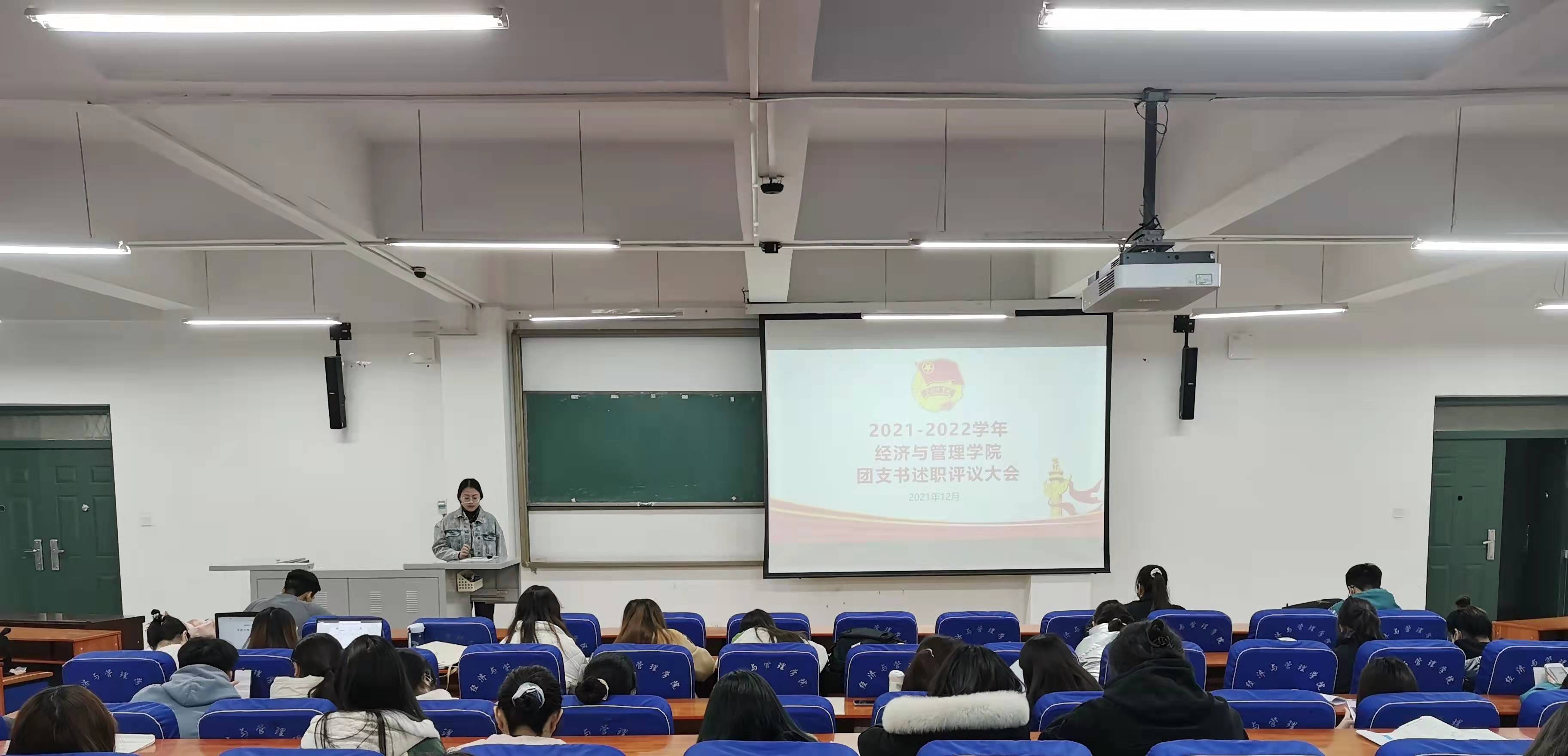 为学习贯彻党的十九届六中全会精神,推动全面从严治团走深走实,全面检验各团支部年度基层团务工作开展情况,及时了解团组织书记履职情况,进一步查找问题、总结经验、交流方法、激发活力,从而推进我院基层团组织规范化、科学化、信息化水平建设。经济与管理学院于12月9日至12月10日期间召开了2021-2022学年第一学期团支书述职大会,我院2018、2019、2020级基层团支部书记于12月9日在经管楼211室召开会议,2021级本科生于12月10日通过腾讯会议参与线上述职。