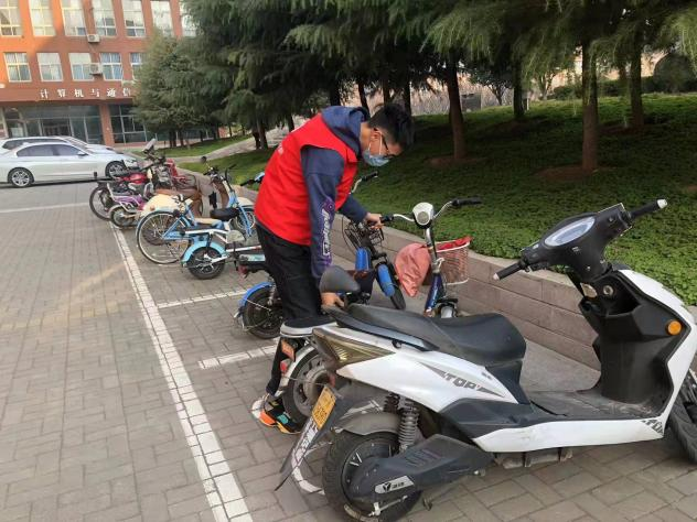 本次活动的志愿服务队由经济与管理学院家庭经济困难的大学生组成,活动开始前全体志愿服务队志愿者在经管楼集中,统一分发志愿者服,由负责人做好点名工作及标语的分发,并分配各个小组的工作,一部分志愿者对校园内停车区域乱停乱放车辆进行摆放,对前来取车停车的同学进行监督、劝导,一部分志愿者对校园内的环境卫生进行清理,对校园内部分展板进行清洁,志愿者们专注的做好自己岗位上的工作,为维护良好的校园环境贡献了自己的一份力量。