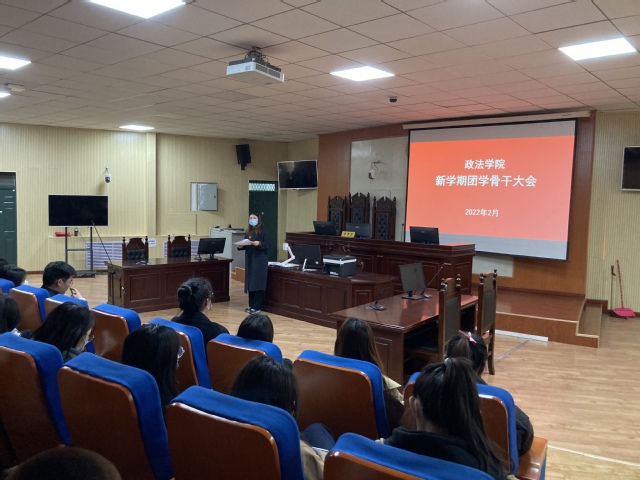 为促进本学期团学工作的顺利开展,2月28日中午,政法学院召开新学期团学骨干大会,学院党委副书记刘放美、团委书记刘栩静及全体团学骨干参加了此次会议。