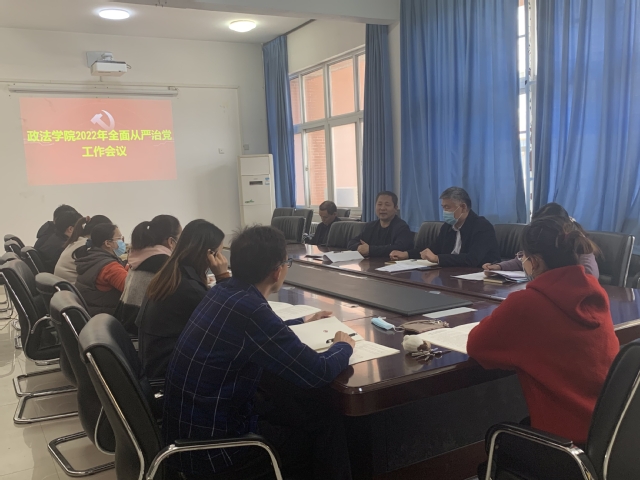 3月3日下午,政法学院党委在政法楼212会议室召开2022年全面从严治党工作会议。学院党政领导班子成员、全体科级干部参加会议,会议由学院党委书记宋德涛主持。