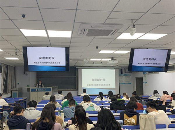 焦云娜老师以“奋进新时代 做坚定有为的青年马克思主义者”为题,从马克思主义在中国的传播、当代青年的历史使命、怎样做坚定有为的青年马克思主义者等方面展开阐述,引领同学们坚定理想信念,高举团旗跟党走,勉励同学们站稳人民立场、积极投身实践,勇立时代潮头,做一名有理想、有担当的新时代有志青年。