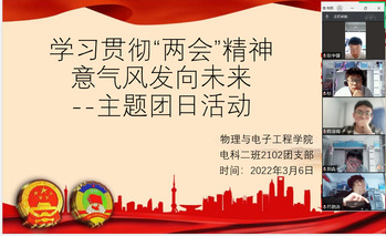 为深入学习贯彻全国两会精神,增强团员青年政治意识和责任担当。3月4日以来物理与电子工程学院组织各团支部开展“学习贯彻两会精神,意气风发向未来”主题团日活动。
