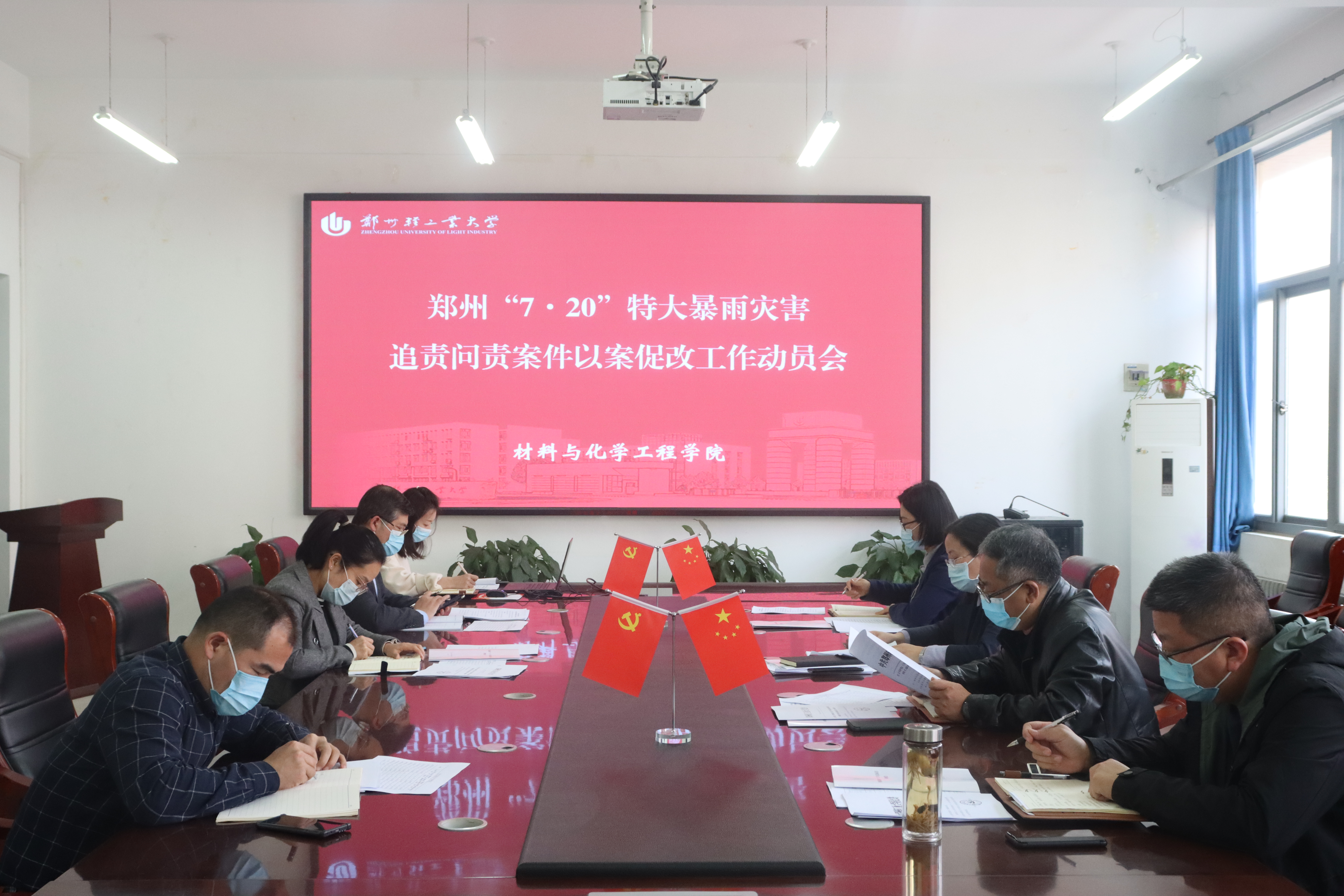 4月4日下午,材料与化学工程学院在化工楼222会议室召开郑州“7·20”特大暴雨灾害追责问责案件以案促改工作动员会,学院领导班子成员参加会议。会议由学院党委书记常亮主持。