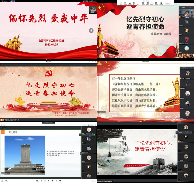 为引导广大青年缅怀革命先烈,弘扬民族精神,厚植爱党爱国情感,近日,食品与生物工程学院各团支部以清明节为契机开展“忆先烈守初心,逐青春担使命”主题团日活动。