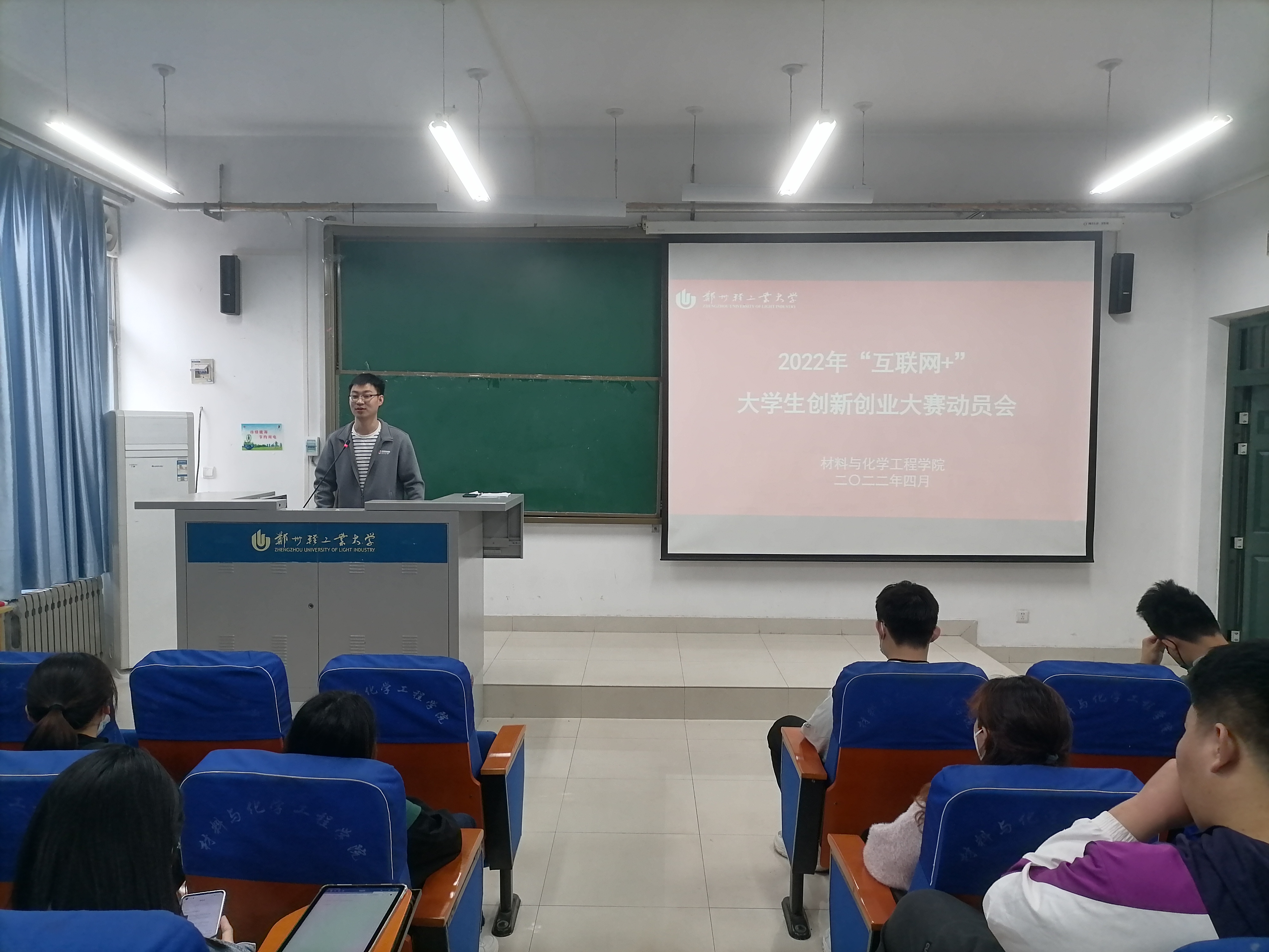 为深入推进学院创新创业教育,加快培养创新创业人才,4月12日中午,材料与化学工程学院在化工楼218召开2022年“互联网+”大学生创新创业大赛动员会,校级大学生创新实验项目、国家级大学生创新创业计划训练项目及相关学科竞赛等项目负责人参加此次动员会。会议由学院就业创业专职辅导员刘贝贝主持。