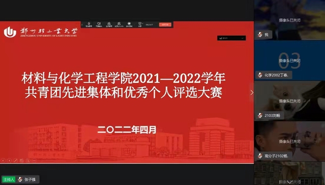 五四评优展风采,青春助力中国梦。为表彰先进树立典型,进一步增强各基层团支部工作积极性、凝聚力、执行力,材料与化学工程学院于4月上旬举办线上“五四”评优答辩暨风采展示活动。